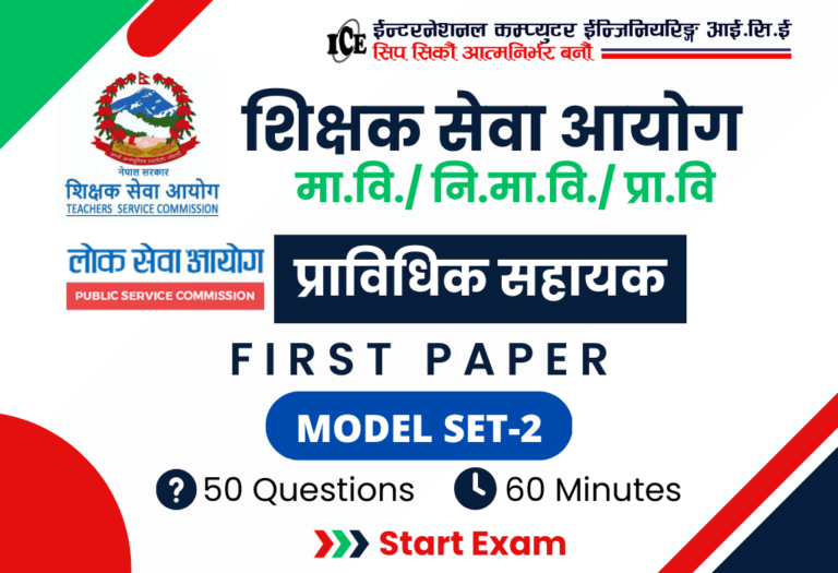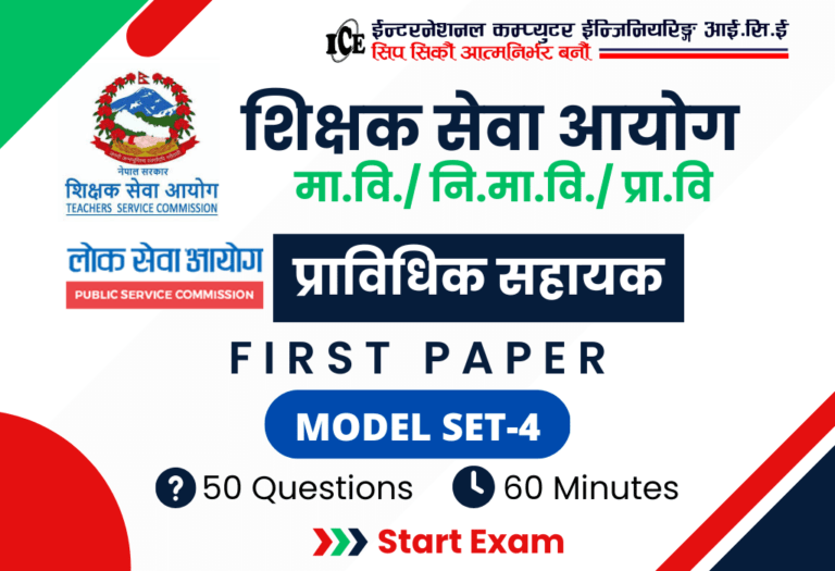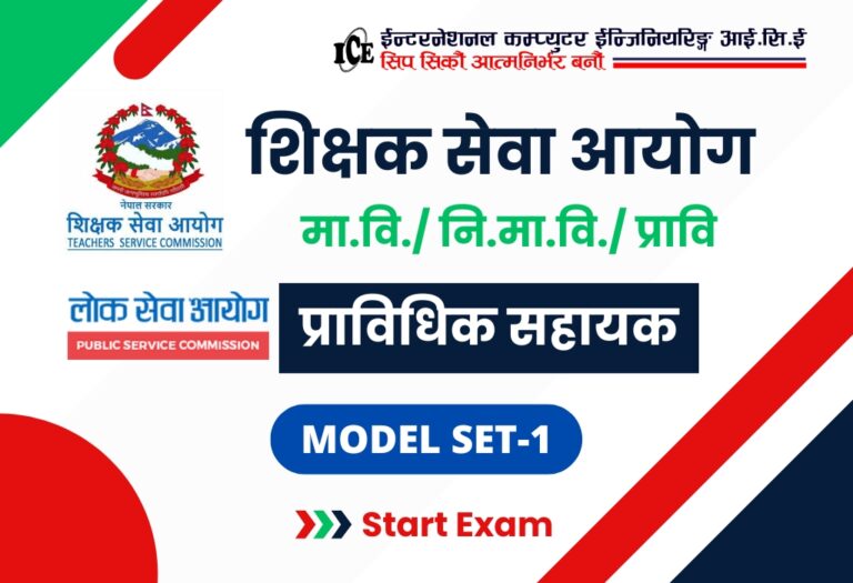 Loksewa Test शिक्षक सेवा आयोग प्रा.वि. नि.मा.वि. र मा.वि./ प्रा.स. सेट-१ शिक्षक सेवा आयोग प्रा.वि. नि.मा.वि. र मा.वि./ प्रा.स. सेट-२ शिक्षक सेवा आयोग प्रा.वि. ,नि.मा.वि. र मा.वि./ प्रा.स. सेट-३ शिक्षक सेवा आयोग प्रा.वि. नि.मा.वि. र मा.वि./ प्रा.स. सेट-४
